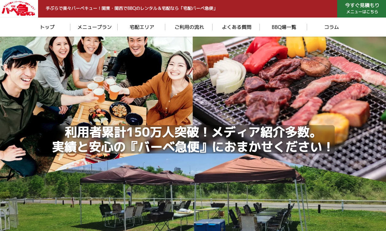 「バーベ急便」は、バーベキュー用品の宅配出張サービスです。必要な食材や器材等すべて用意して指定場所までお届けします。