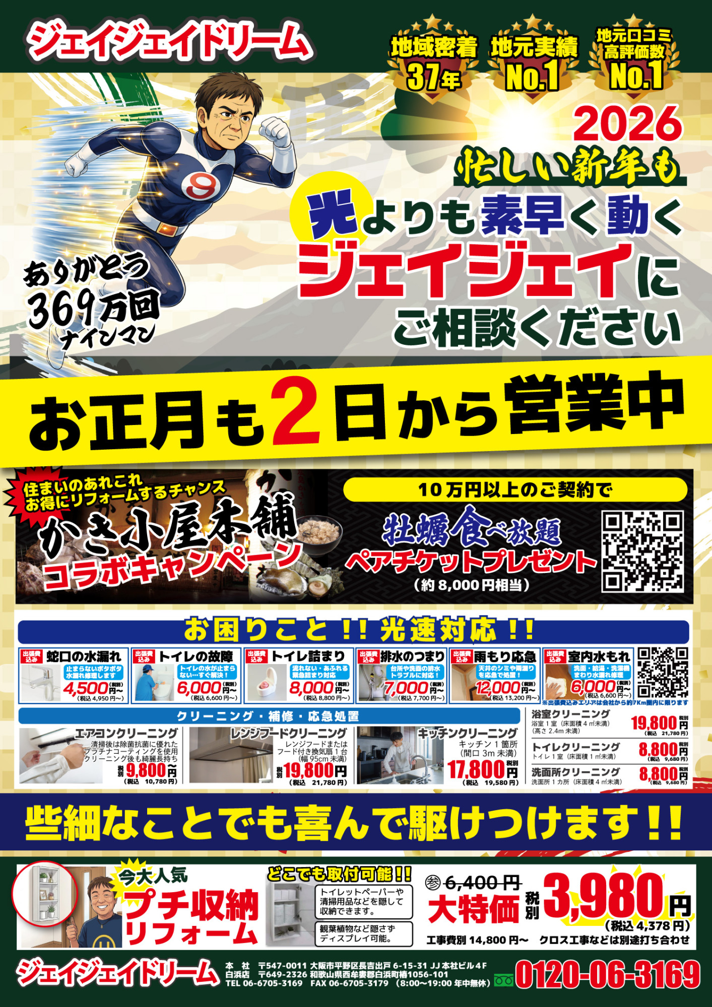 「お正月も安心を。新年は1月2日から営業いたします!」