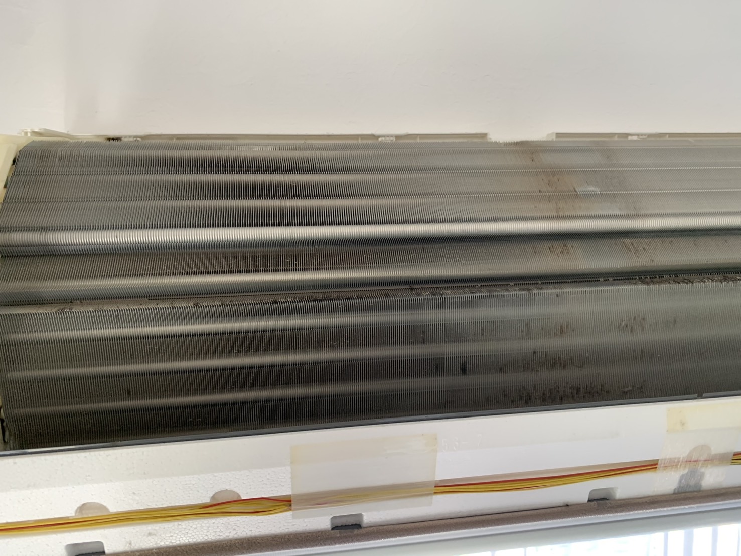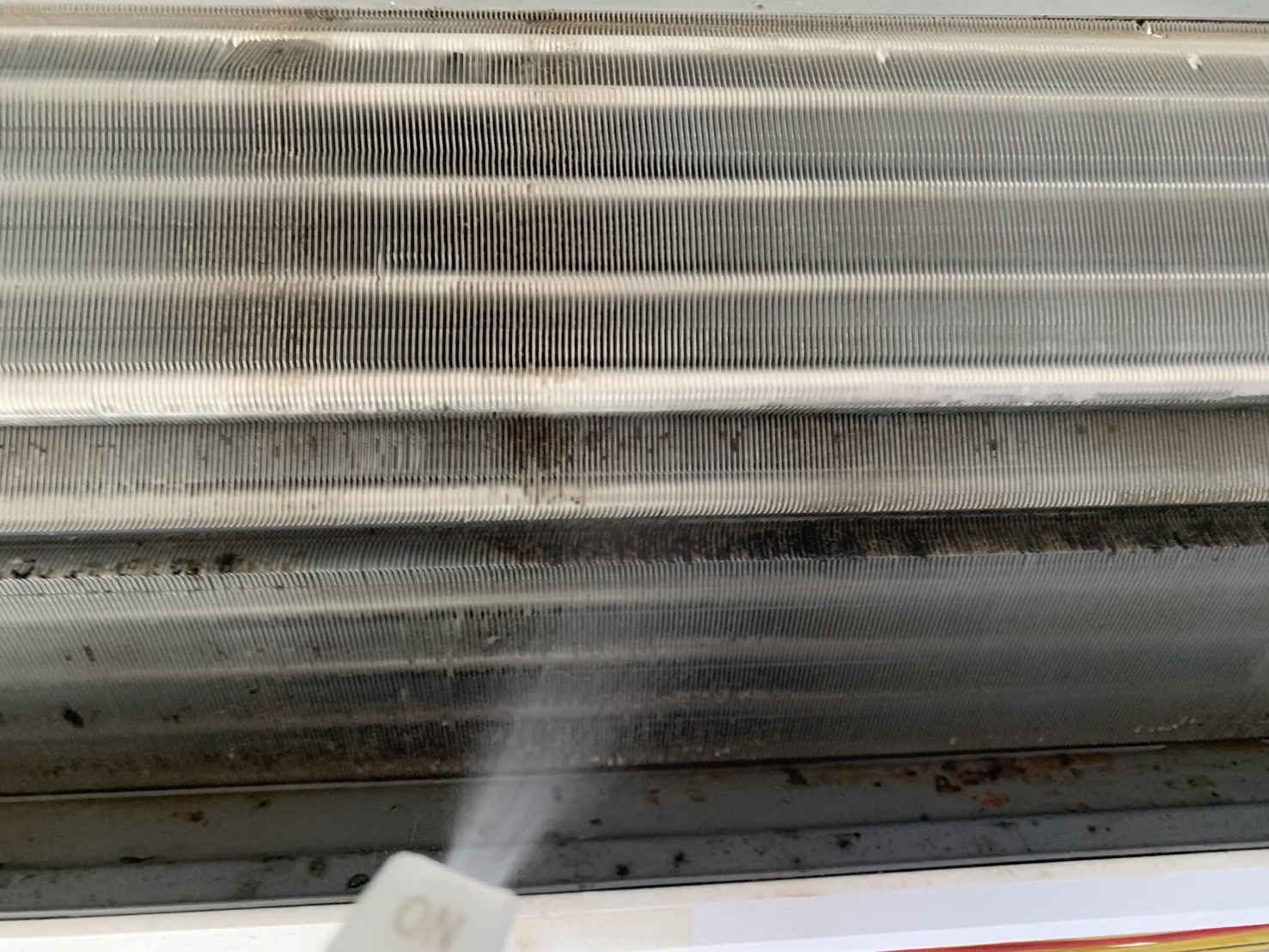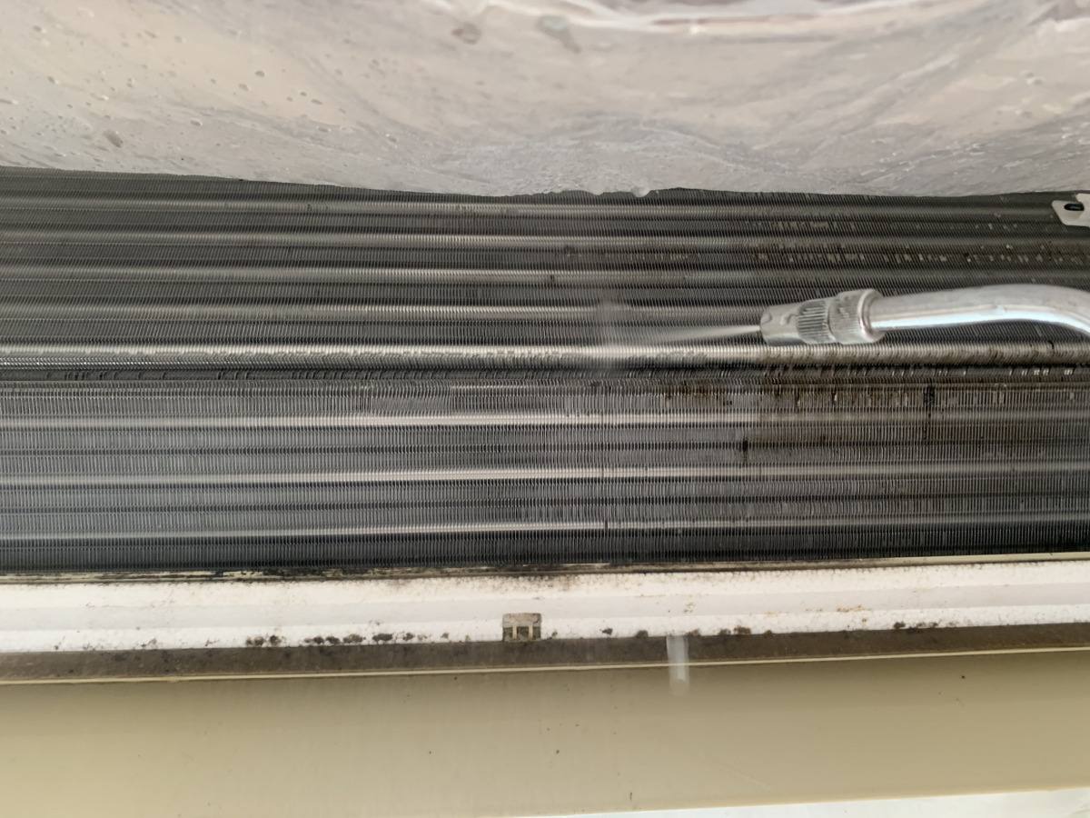 エアコン内部の熱交換器に付着したカビやホコリを薬剤と高圧で洗浄。