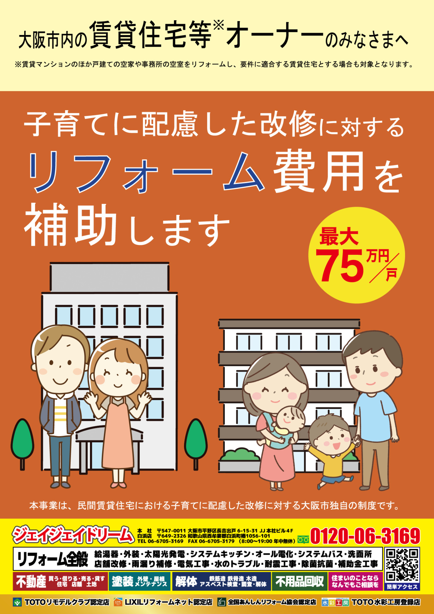 大阪市で賃貸マンションを所有しているなら、【子育て世帯向けリフォーム+補助金活用】は、空室対策・資産価値アップに直結するチャンスです。