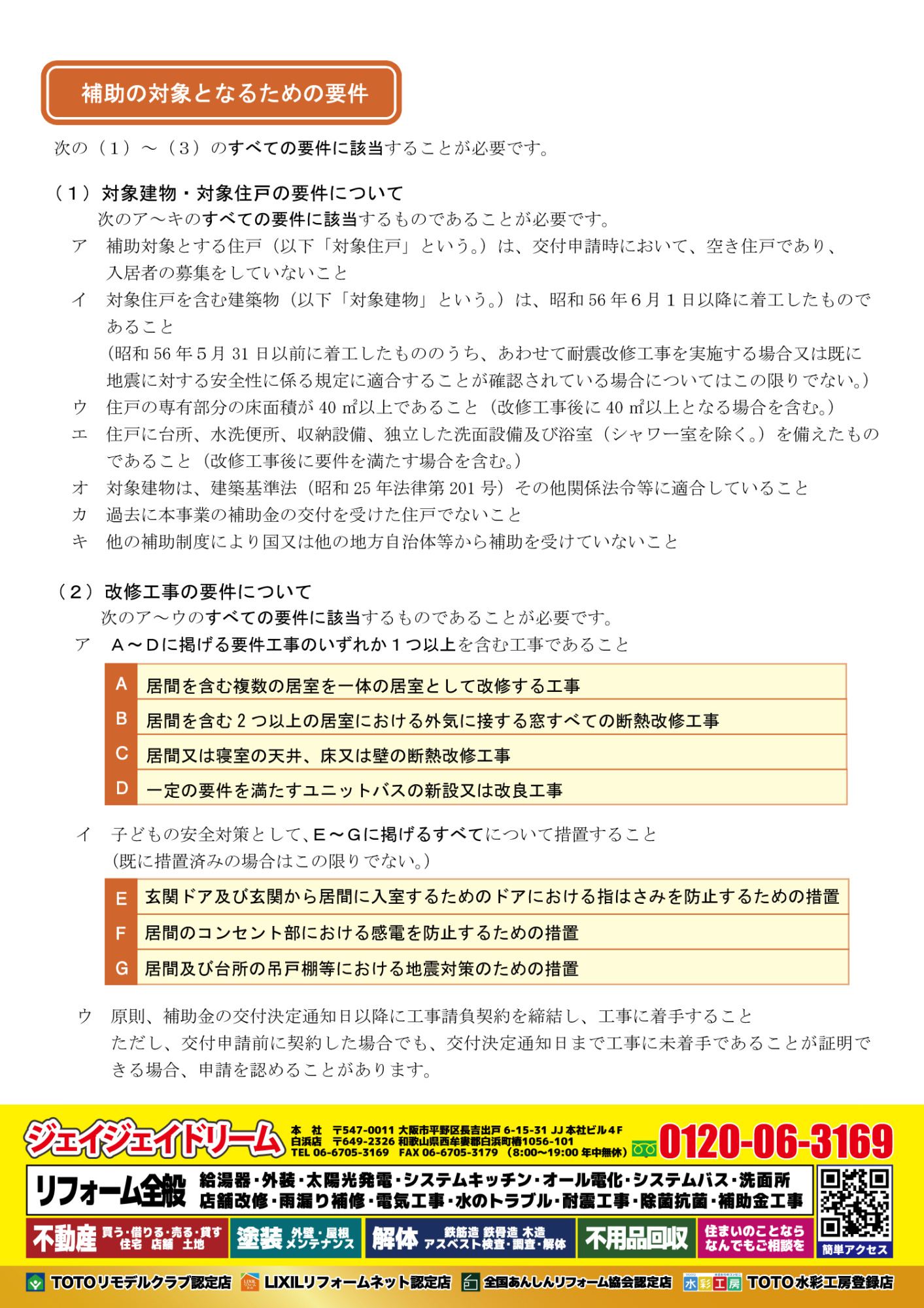 補助対象となる具体的な改修内容