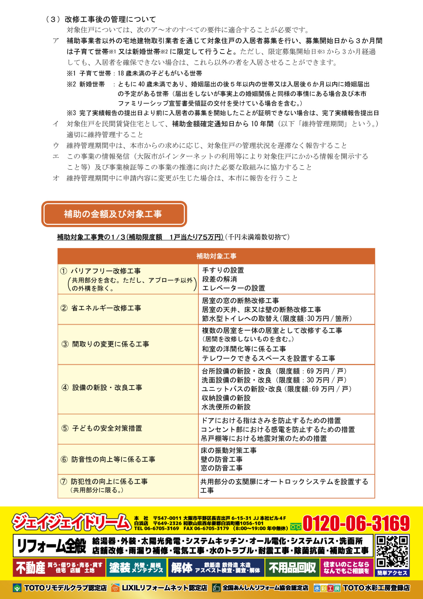 【大阪市子育て世帯等向け民間賃貸住宅改修促進事業】を活用すれば、空室対策と資産価値アップ、両方を一気に狙えます。