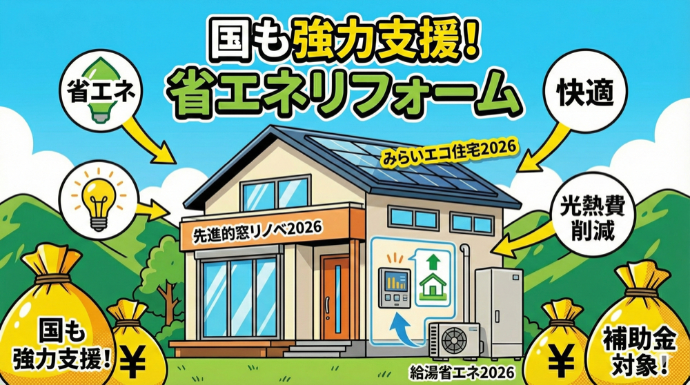 - みらいエコ住宅2026: 子育て世帯なら最大60万円(通常20万円)の補助が受けられます 。断熱改修やバリアフリー、エコ設備設置が対象です 。