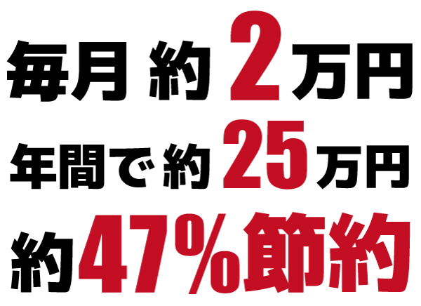 毎月20,000円、47%の削減に成功 しました。