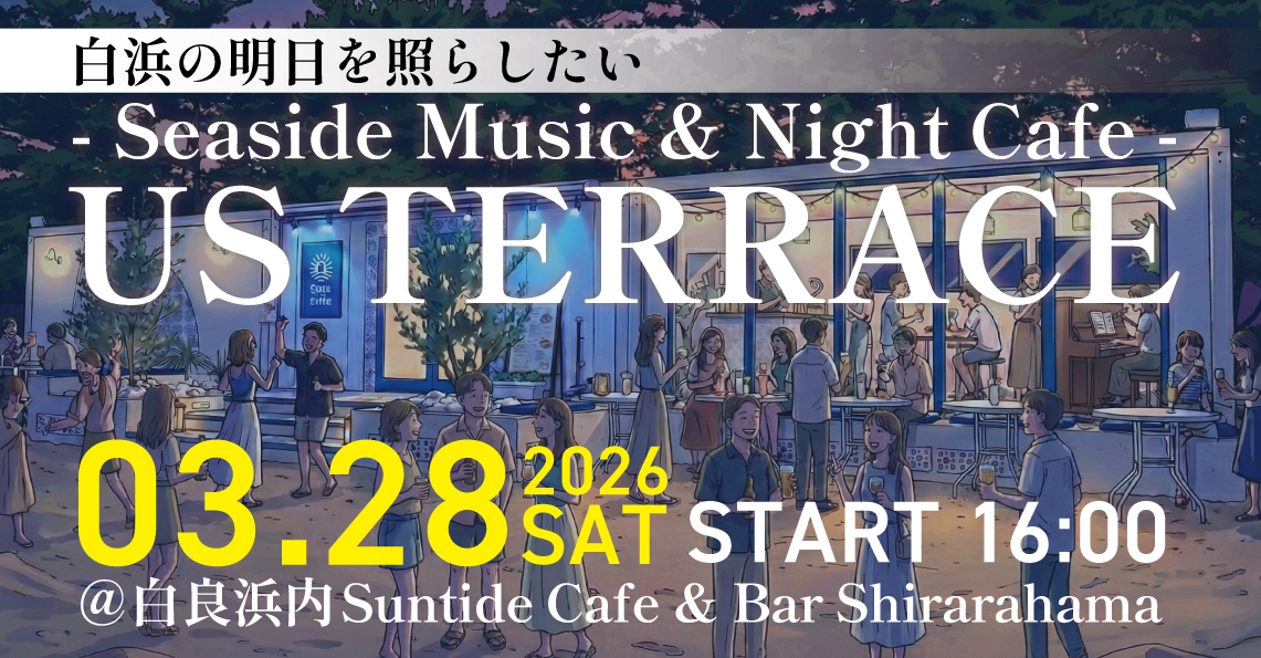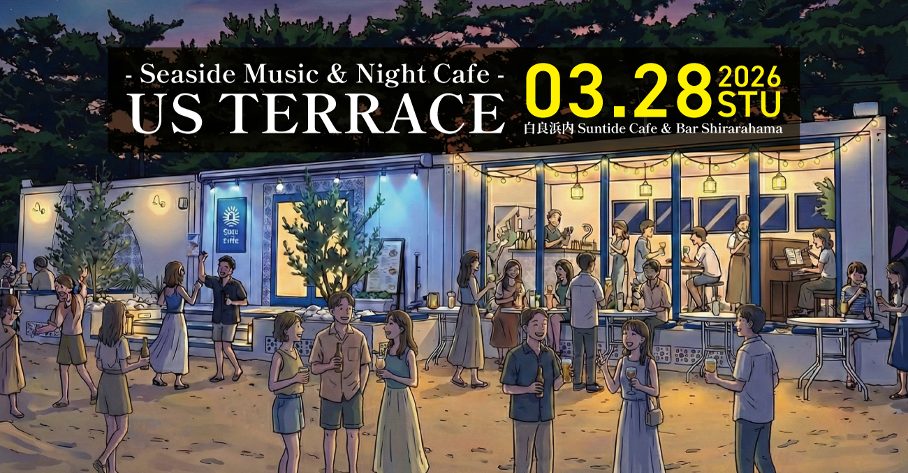 3月28日、白良浜の波音が響く「SUNTIDE Cafe & Bar」にて、音とナイトカフェのイベント『US TERRACE(アステラス)』を開催します。